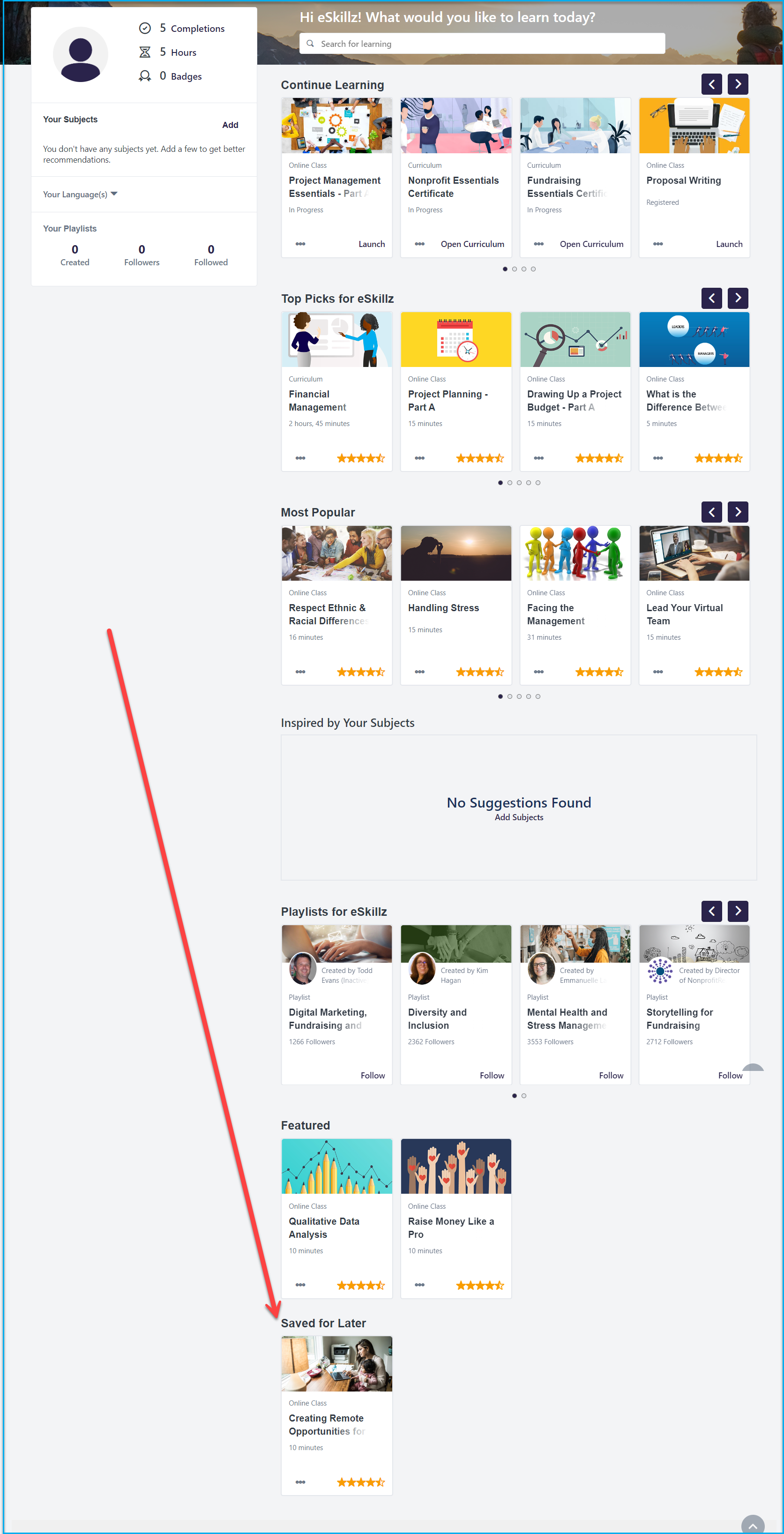 If you have selected the 'Save for Later' option for training, you will be able to locate your Save for Later list by doing the following: