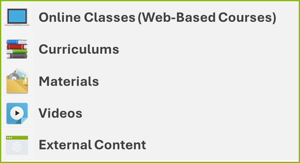 These training types are identifiable by the icons associated with them at our site: